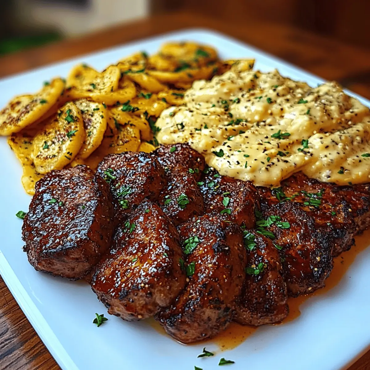 Mashed Potatoes: A classic side of creamy mashed potatoes can soak up the delicious garlic butter sauce and offer a comforting touch to the dish. Fluffy and buttery, they pair perfectly with the steak.