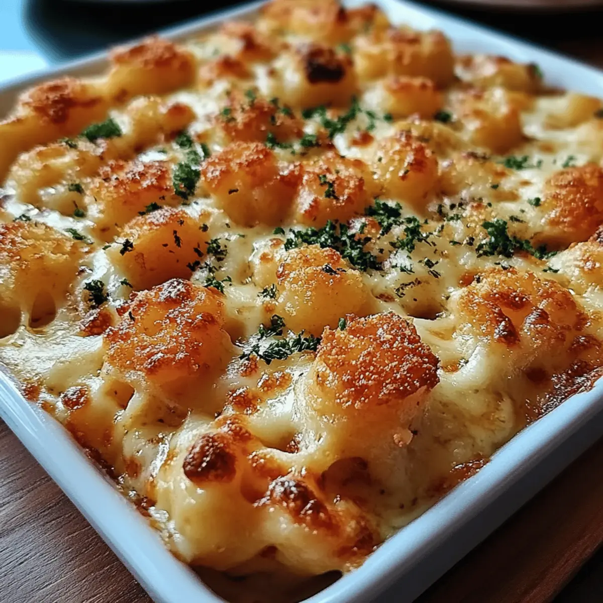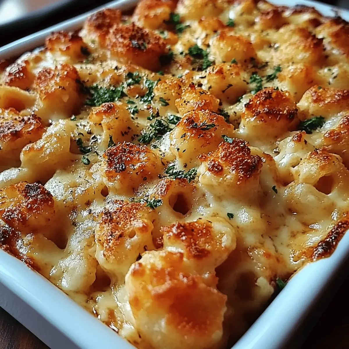 Once baked, remove the dish from the oven and let it cool for a few minutes. To brighten it up, sprinkle ¼ cup of chopped parsley over the top before serving. The vibrant green adds a fresh touch that complements the richness of the dish, making it an inviting centerpiece for your meal.
